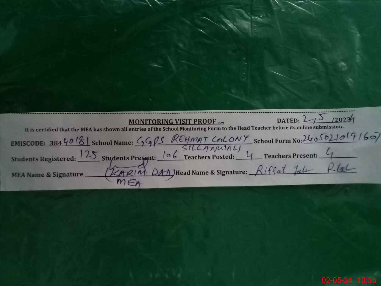 | EMIS Code: 38440181 | Name of School: GGPS RAHMAT COLONY SILLANWALI | |||