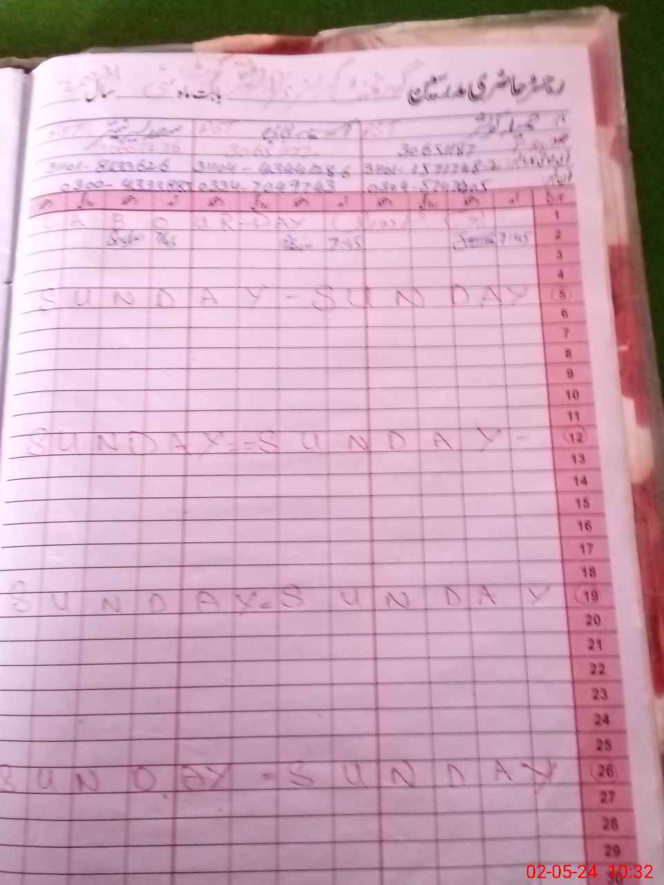 | CNIC | Full Name | Designation | R/C | Absence During Last Calender Month |