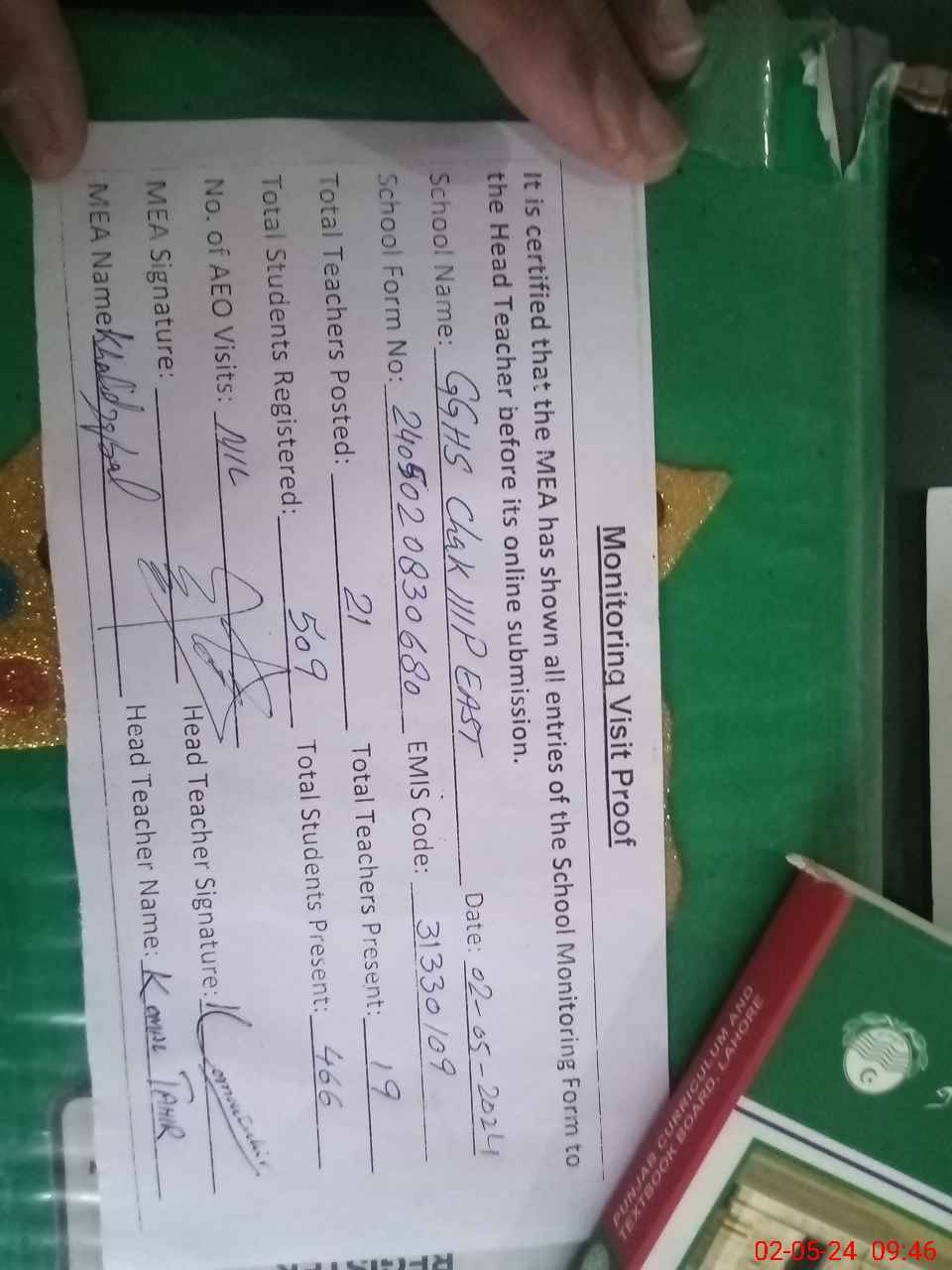 | Certified that this School was Inspected by the Undersigned MEA/DMO Today and the Information Stated Above is as Per Record. | |||||