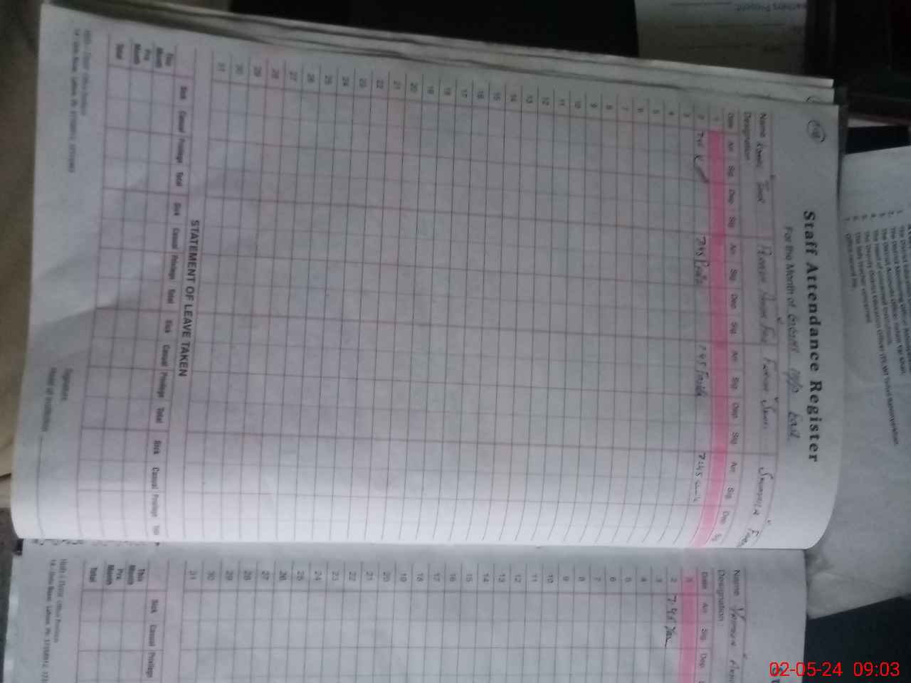 | No. of Students Present - Female | 28 | 0 | 42 | 43 | 22 | 53 | 40 | 39 | 50 | 32 | 33 | 25 | 45 | 452 | ||