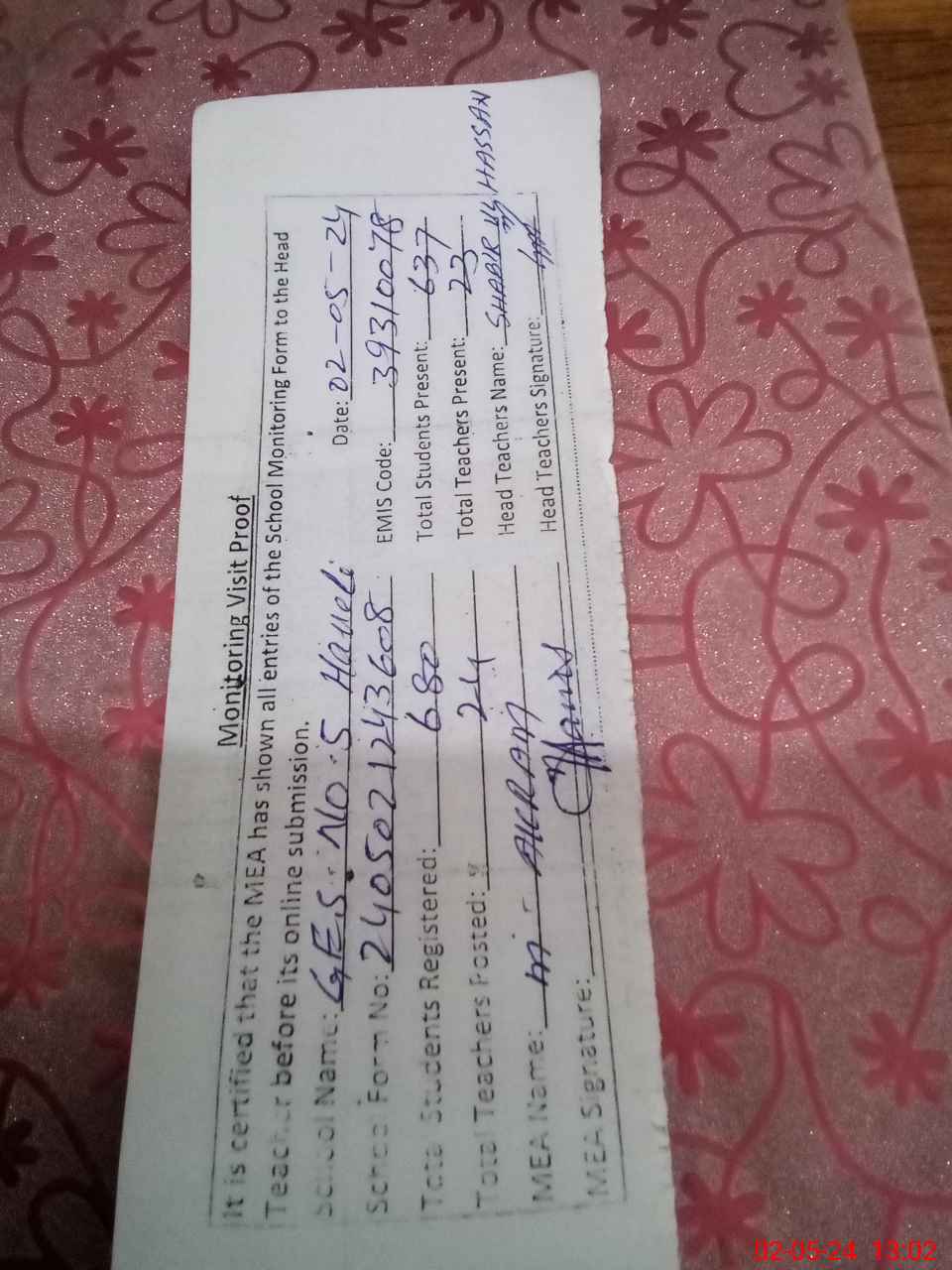 | Certified that this School was Inspected by the Undersigned MEA/DMO Today and the Information Stated Above is as Per Record. | |||||