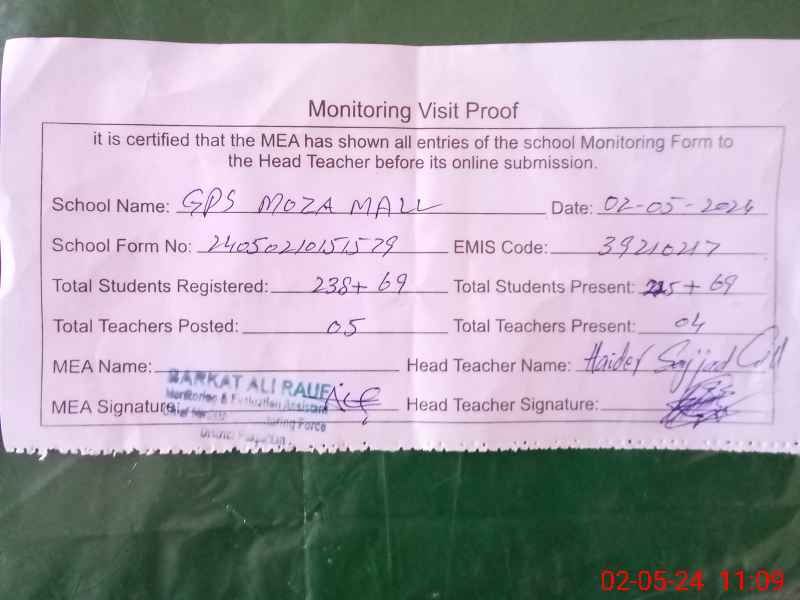 | EMIS Code: 39210217 | Name of School: GPS MOUZA MALL | |||