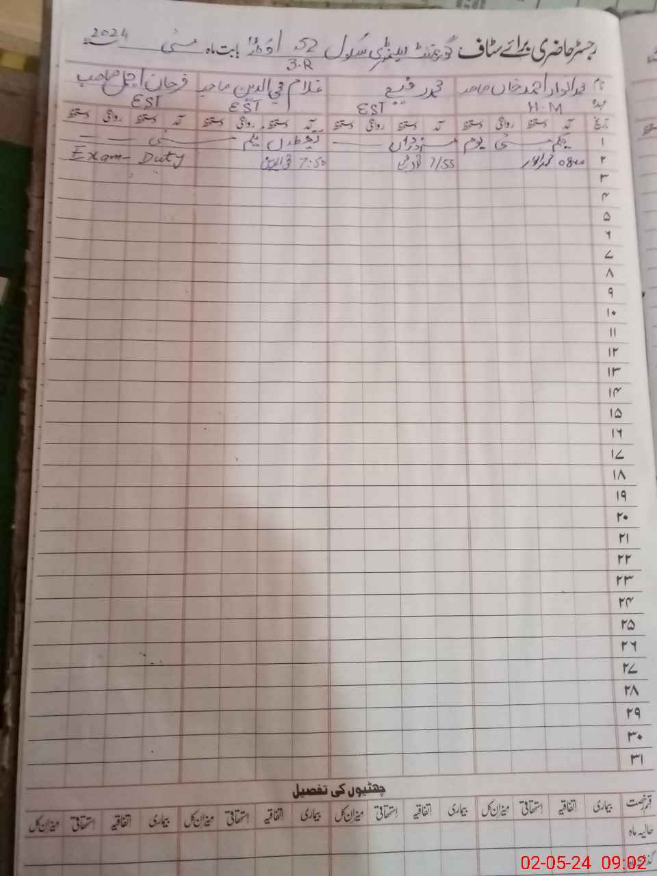 | 35**** | Fa**** Aj**** | 3 | 1 | 0 | 0 | 0 | 0 | 0 | 0 | 0 | 0 | 0 | Exam Duty |