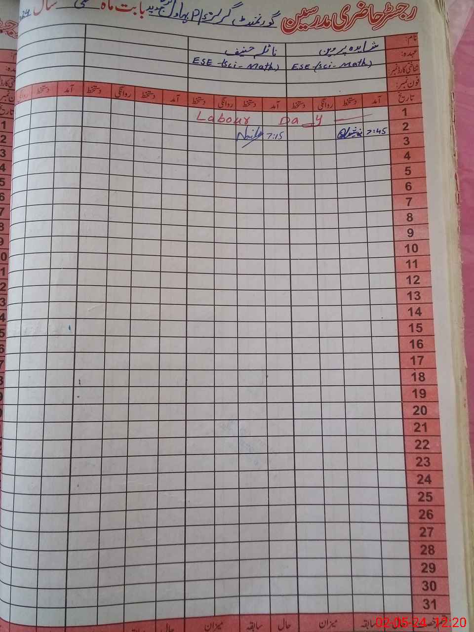 | CNIC | Full Name | Designation | R/C | Absence During Last Calender Month |