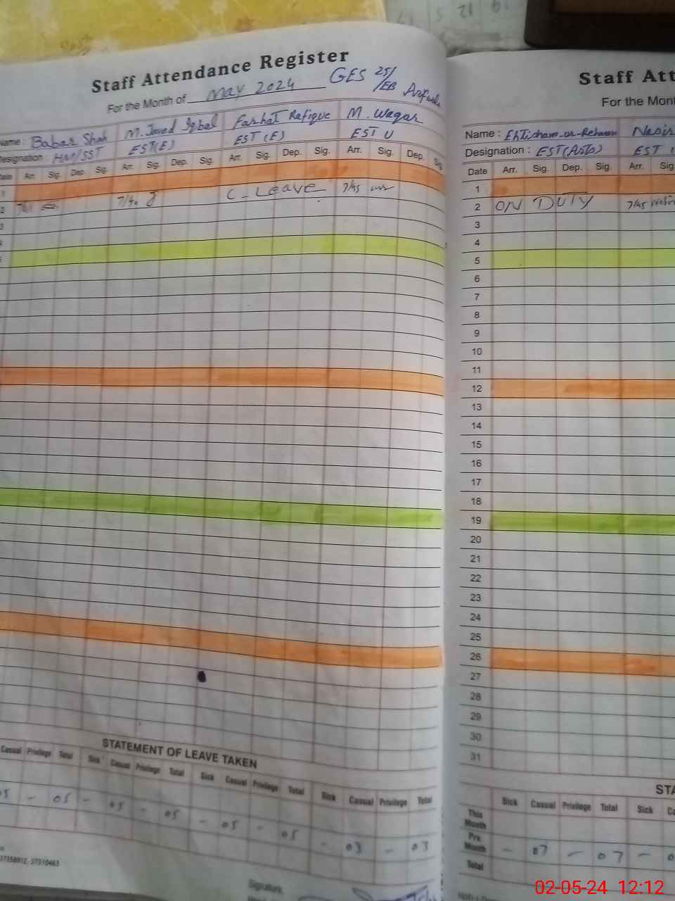 | 36**** | Eh**** | 2 | 0 | 6 | 0 | 0 | 0 | 0 | 0 | 0 | 0 | Exam Duty | |
