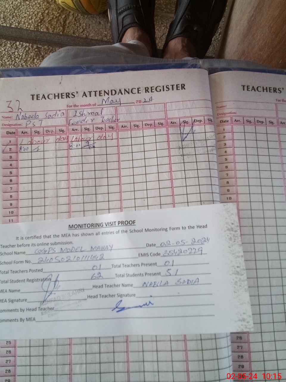 | Attendance Register | Head Teacher | MEA with School | Visit Proof |