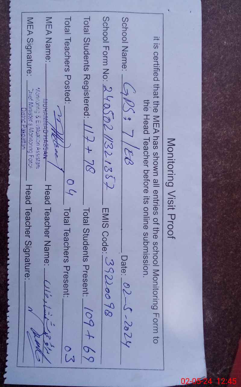 | EMIS Code: 39220098 | Name of School: GPS 7 EB | |||