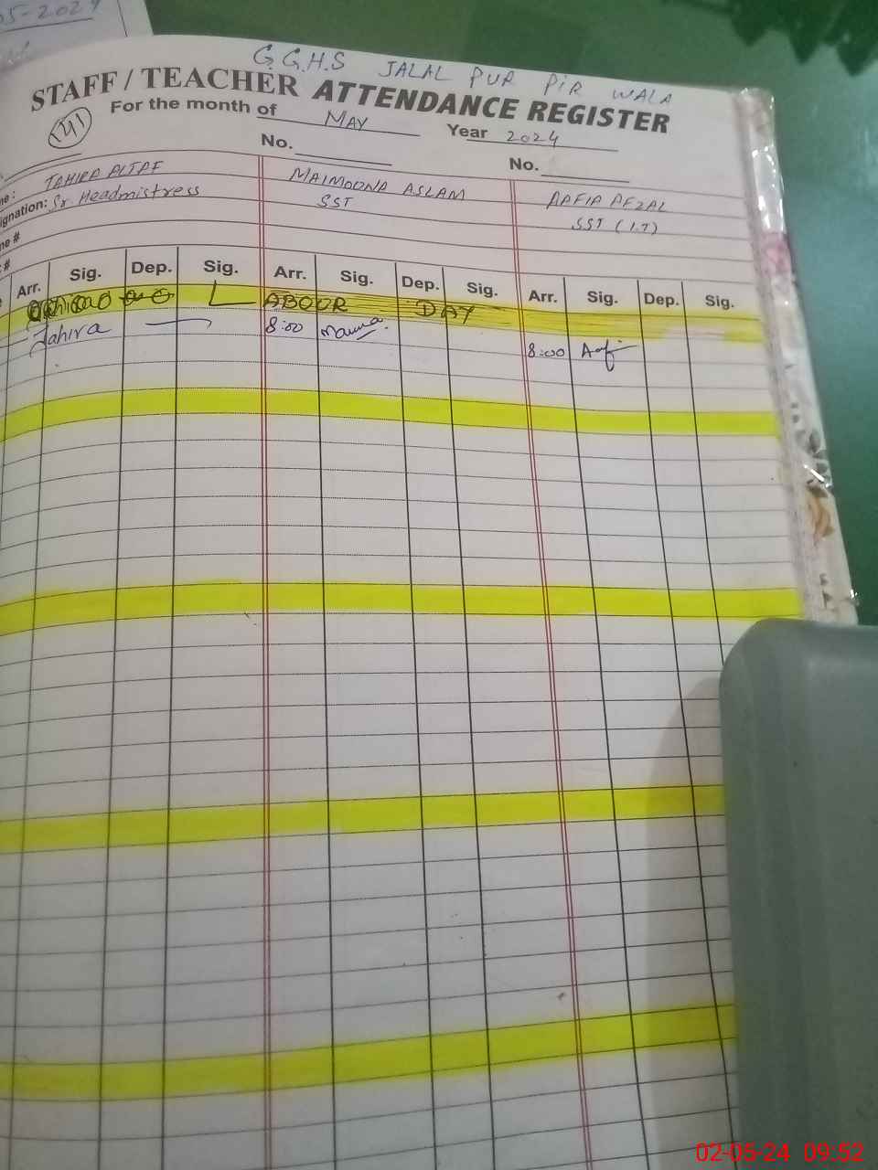 | Remarks (Use Separate Page if Required): Sst jameela bibi attached to this school wef 09april 2024 from GGES Misran Wala | |||||