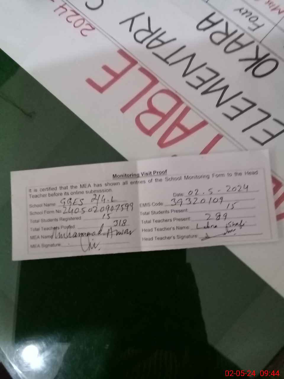 | Certified that this School was Inspected by the Undersigned MEA/DMO Today and the Information Stated Above is as Per Record. | |||||