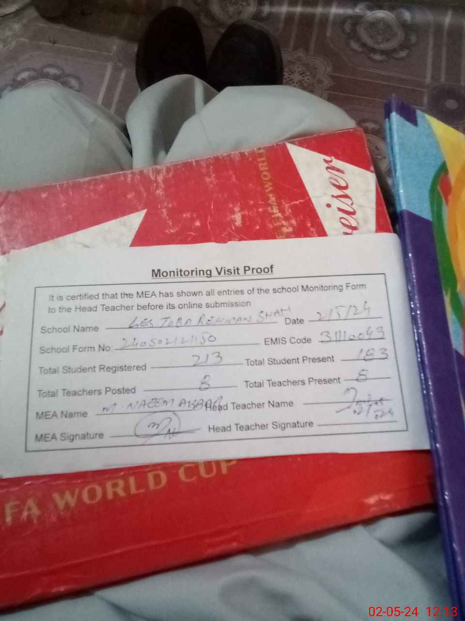 | Attendance Register | Head Teacher | MEA with School | Visit Proof |