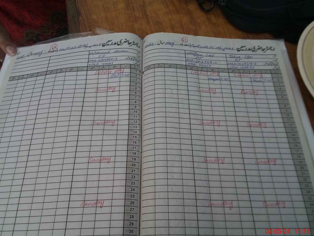 | CNIC | Full Name | Designation | R/C | Absence During Last Calender Month |