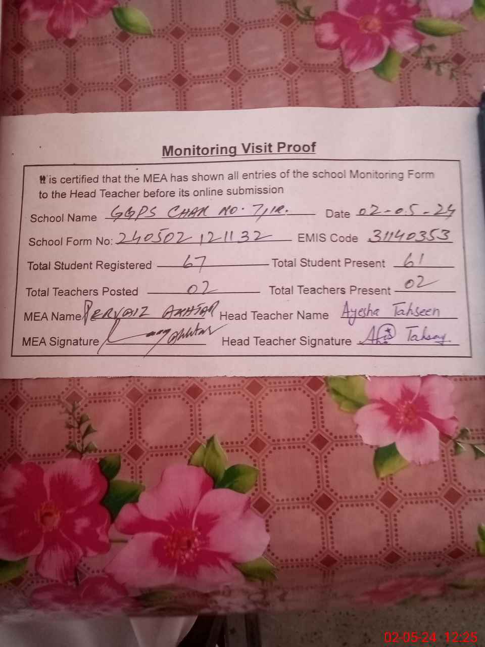 | EMIS Code: 31140353 | Name of School: GGPS CHAK NO. 7/1-R | |||