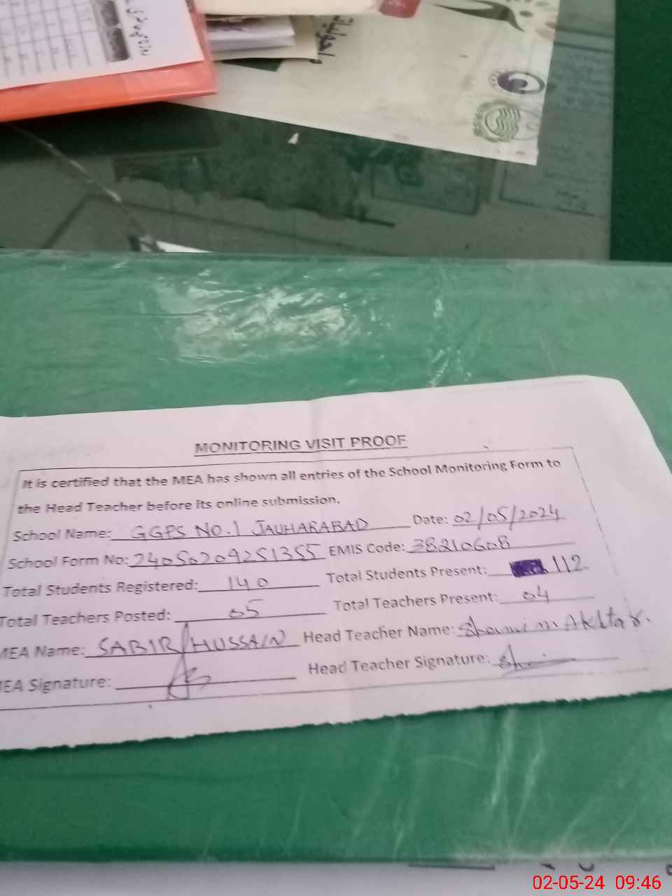 | EMIS Code: 38210608 | Name of School: GGPS NO. 1 JAUHARABAD | |||