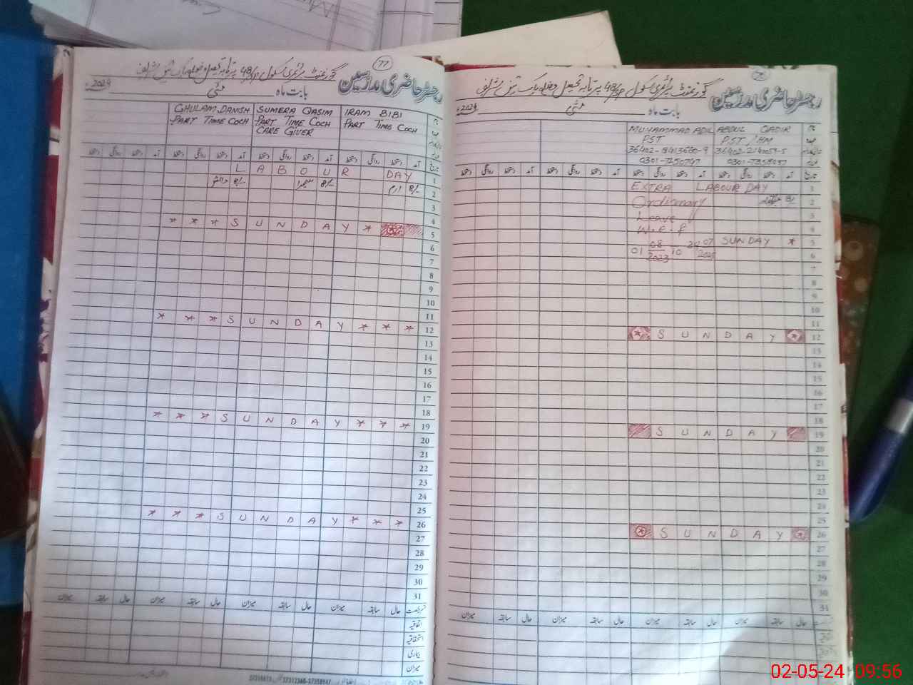 | CNIC | Full Name | Designation | R/C | Absence During Last Calender Month |