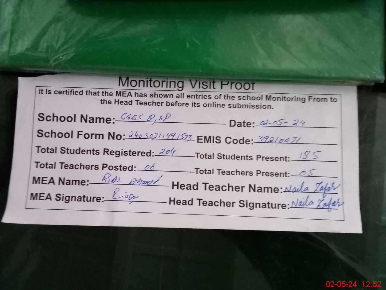 | EMIS Code: 39210071 | Name of School: GGES 8 SP | |||