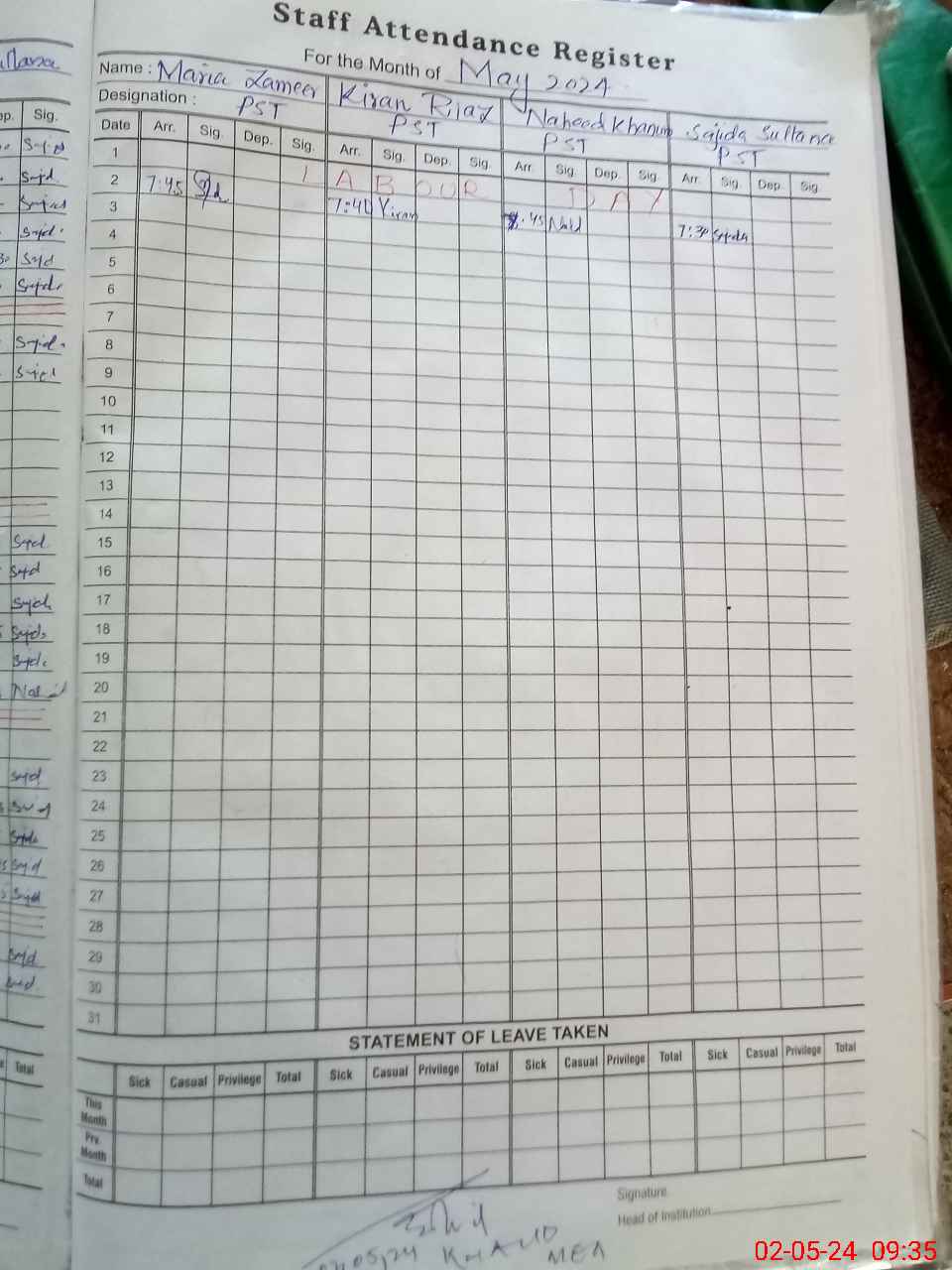 | Attendance Register | Head Teacher | MEA with School | Visit Proof |