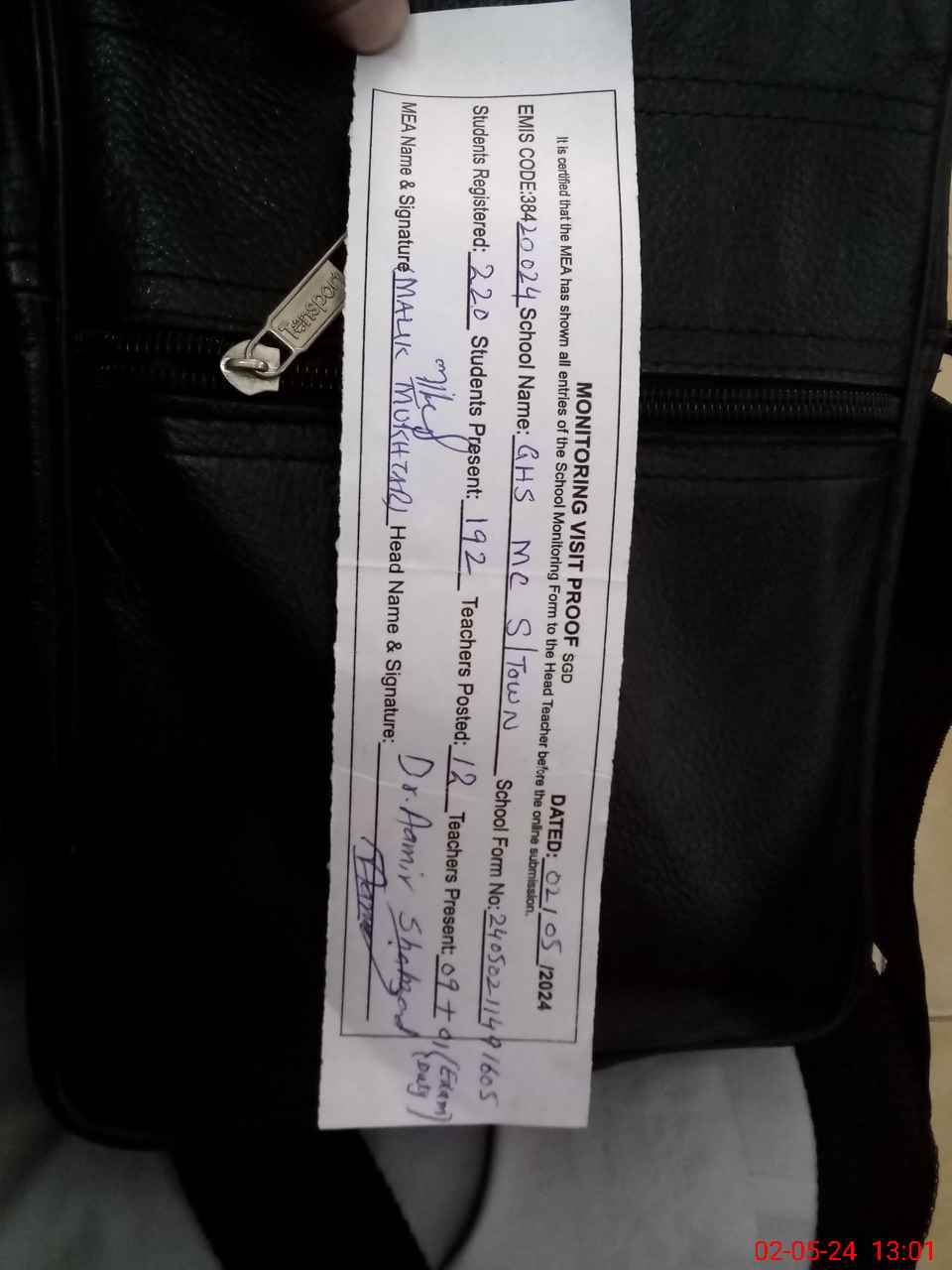 | Attendance Register | Head Teacher | MEA with School | Visit Proof |