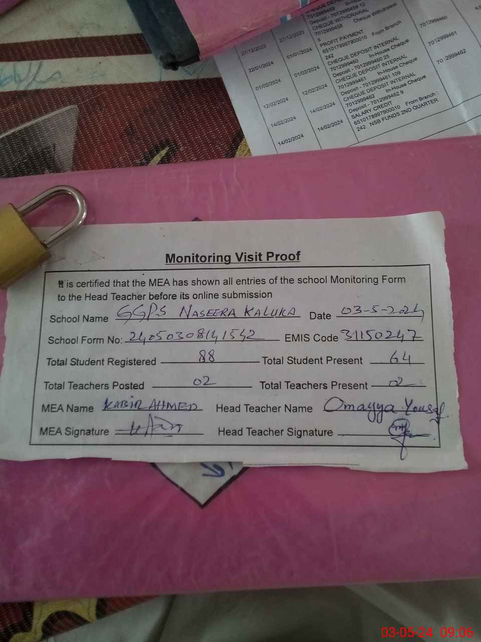 | EMIS Code: 31150247 | Name of School: GGPS NASEERA KALU KA | |||