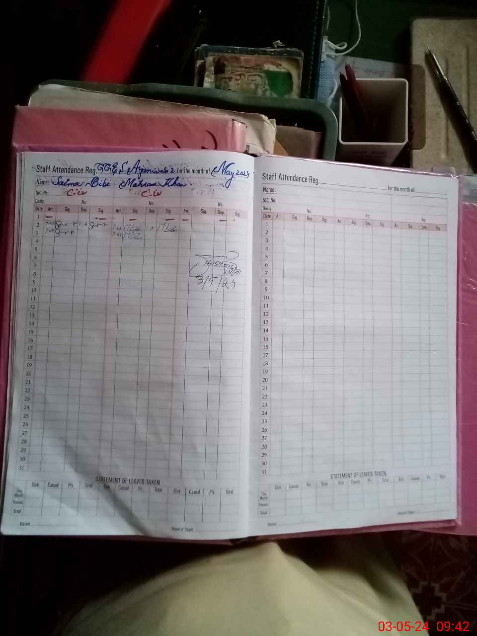 | CNIC | Full Name | Designation | R/C | Absence During Last Calender Month |