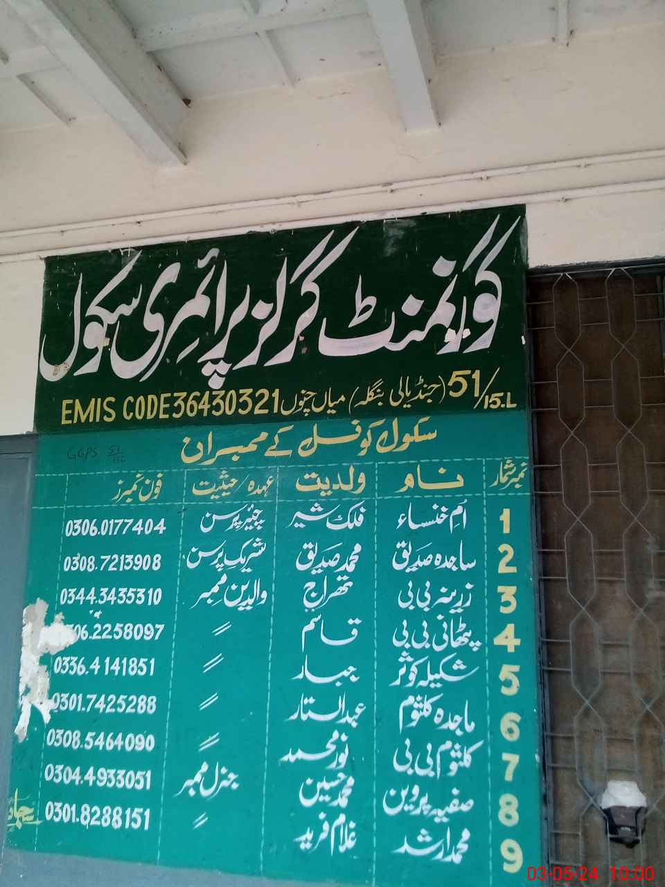 | EMIS Code: 36430321 | Name of School: GGPS 51/15-L, MIAN CHANNU | |||
