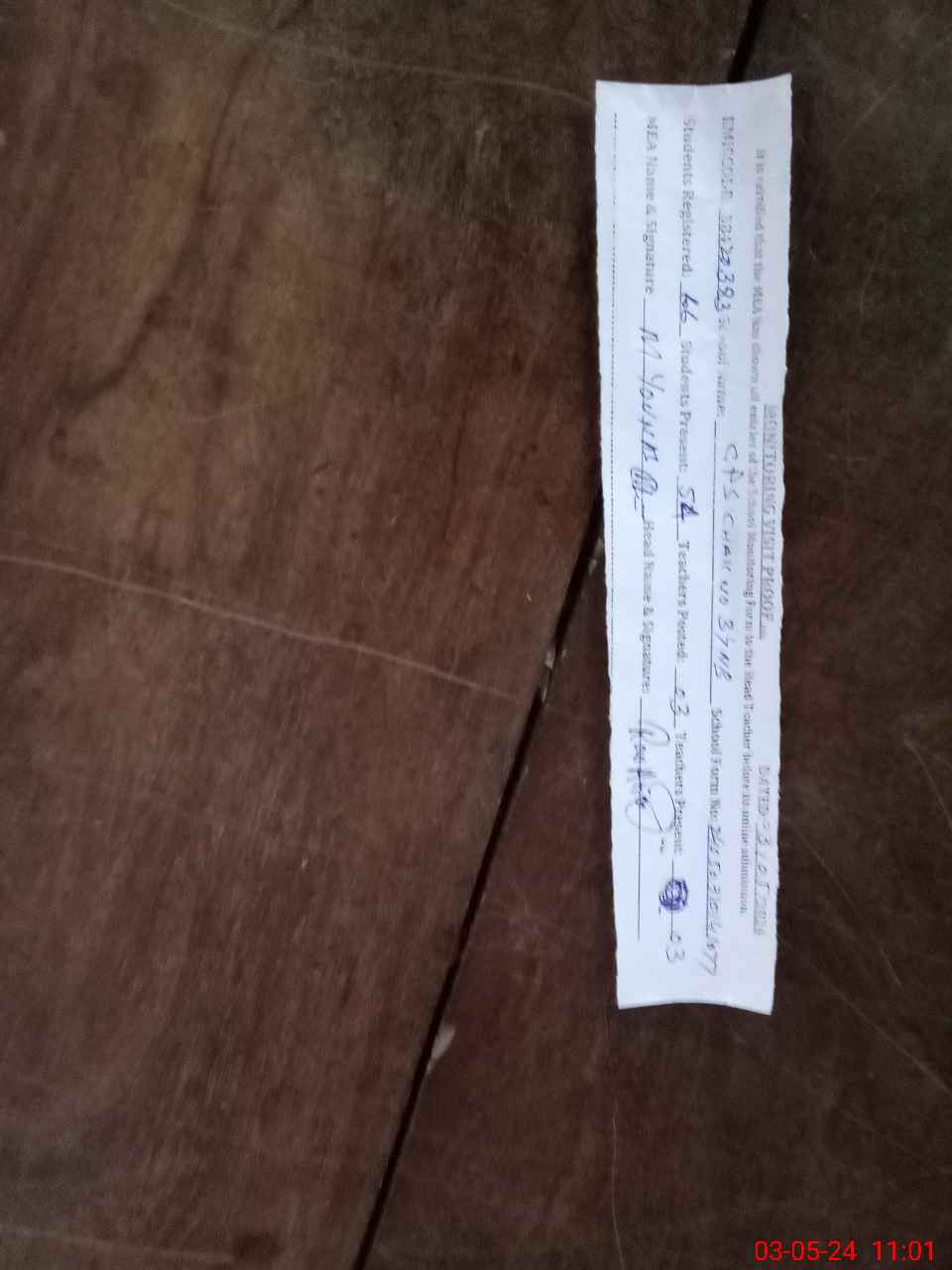| Attendance Register | Head Teacher | MEA with School | Visit Proof |