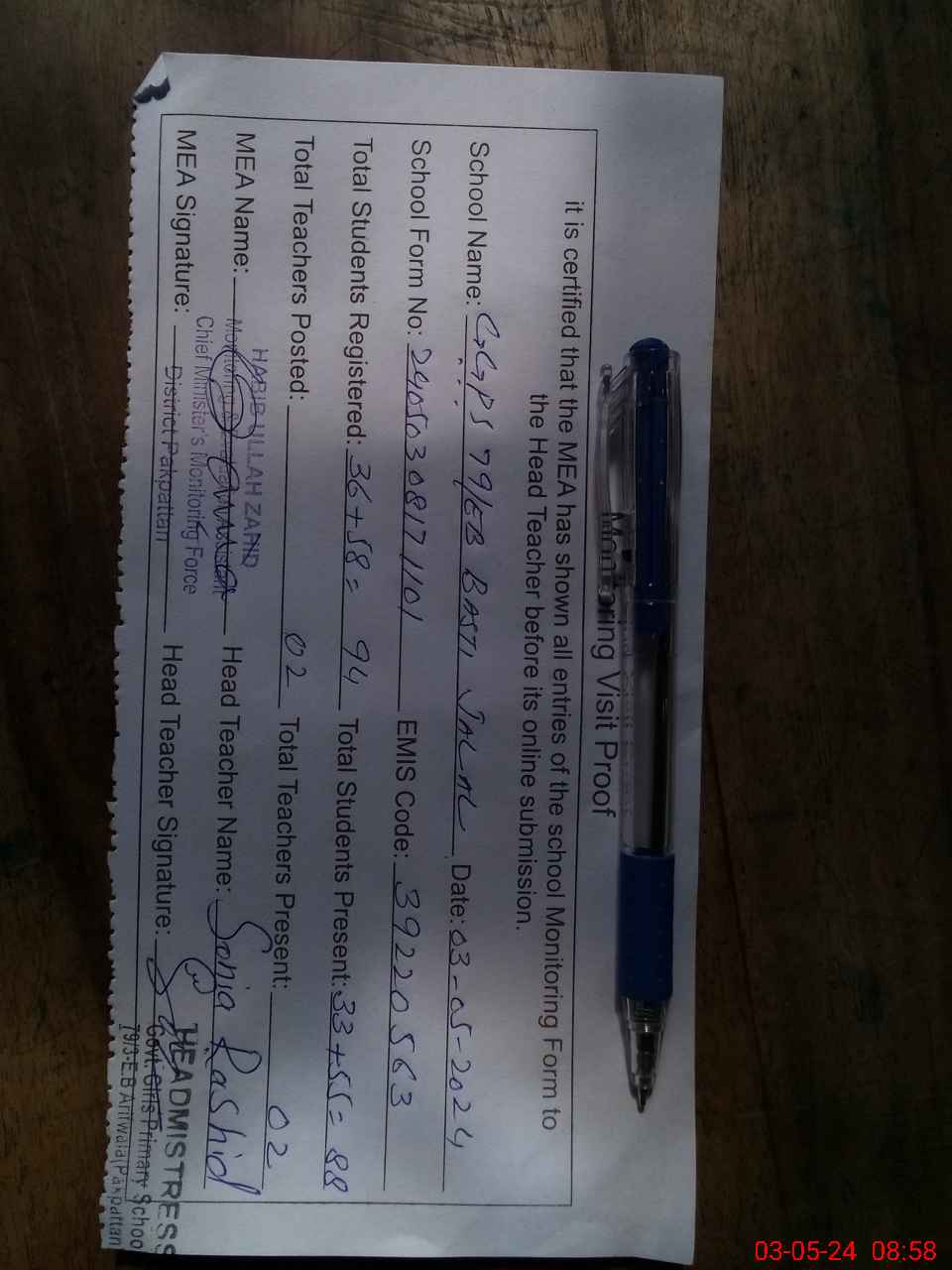 | EMIS Code: 39220563 | Name of School: GGPS 79/EB III basti jalal | |||