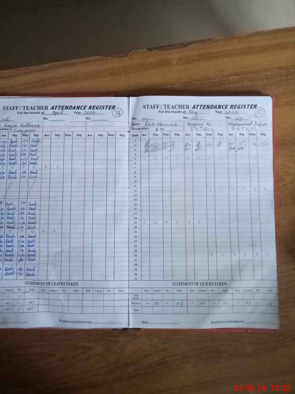 | 31**** | Ha**** Mu**** Ab**** Ma**** | 3 | 1 | 0 | 0 | 0 | 0 | 0 | 0 | 0 | 0 | 0 | Exam Duty |
