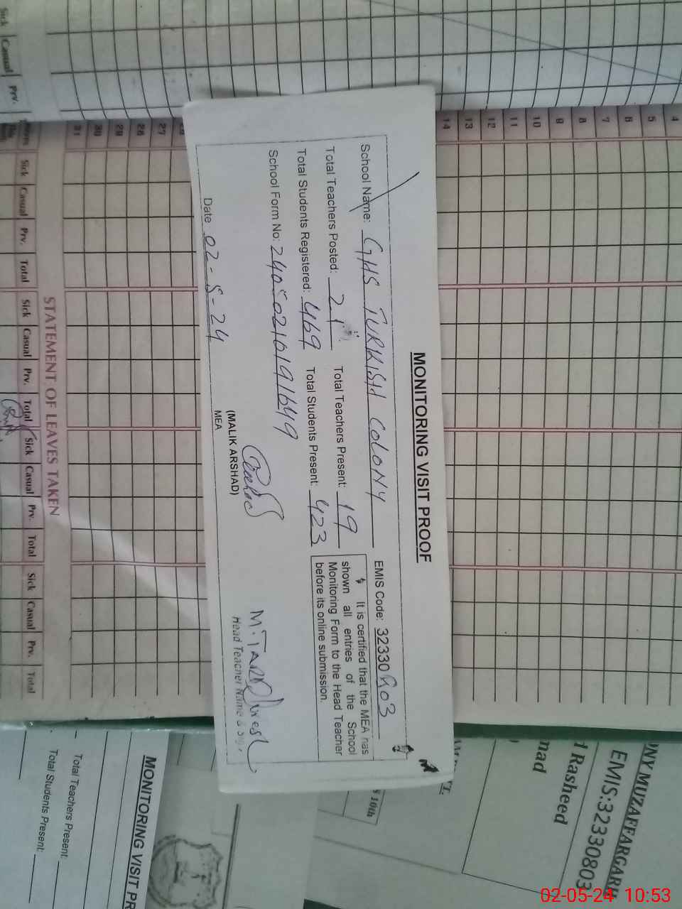 | EMIS Code: 32330803 | Name of School: GHS TURKISH COLONY MUZAFFARGARH | |||