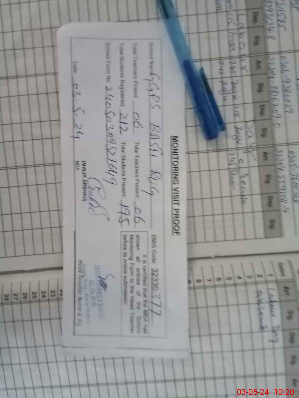 | Name: SH**** BE**** Designation: (School Headmaster's/Headmistress's) PST Phone/Cell Number: 03**** |