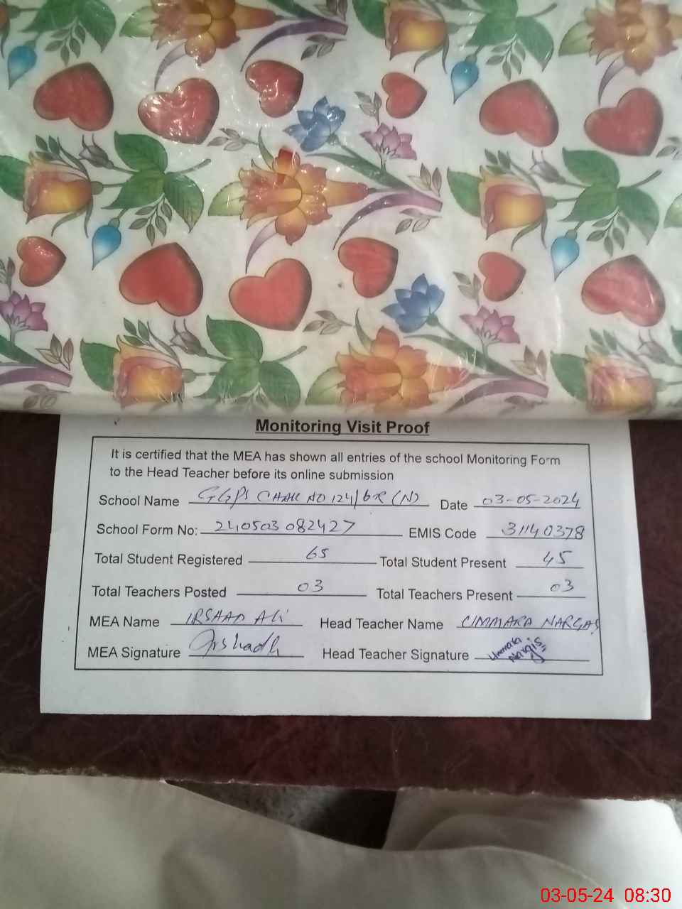 | EMIS Code: 31140378 | Name of School: GGPS CHAK NO 124/6-R | |||
