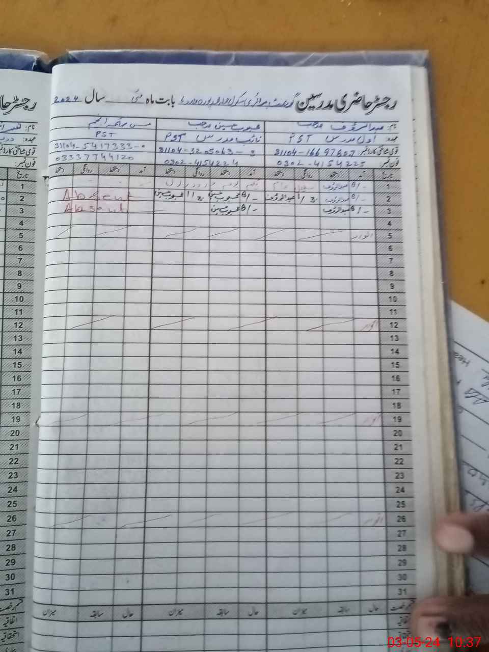 | CNIC | Full Name | Designation | R/C | Absence During Last Calender Month |