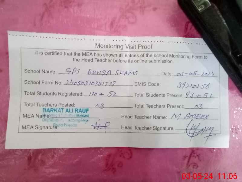 | EMIS Code: 39210256 | Name of School: GPS BUNGA SHAMS | |||