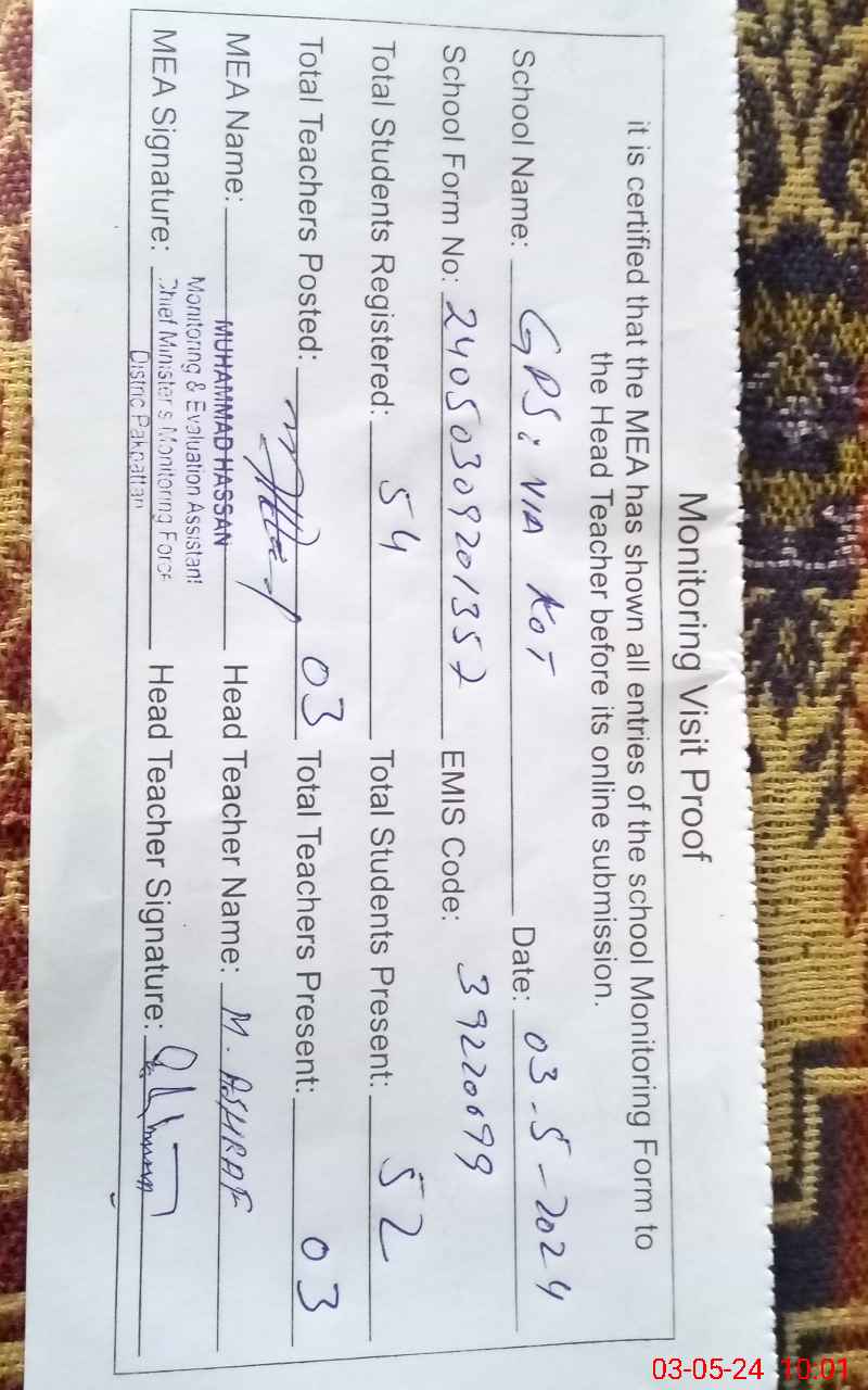 | EMIS Code: 39220099 | Name of School: GPS VIAH KOT | |||