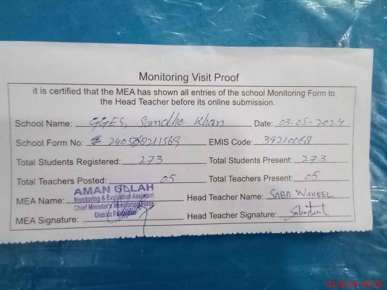 | EMIS Code: 39210058 | Name of School: GGES SANDHAY KHAN | |||