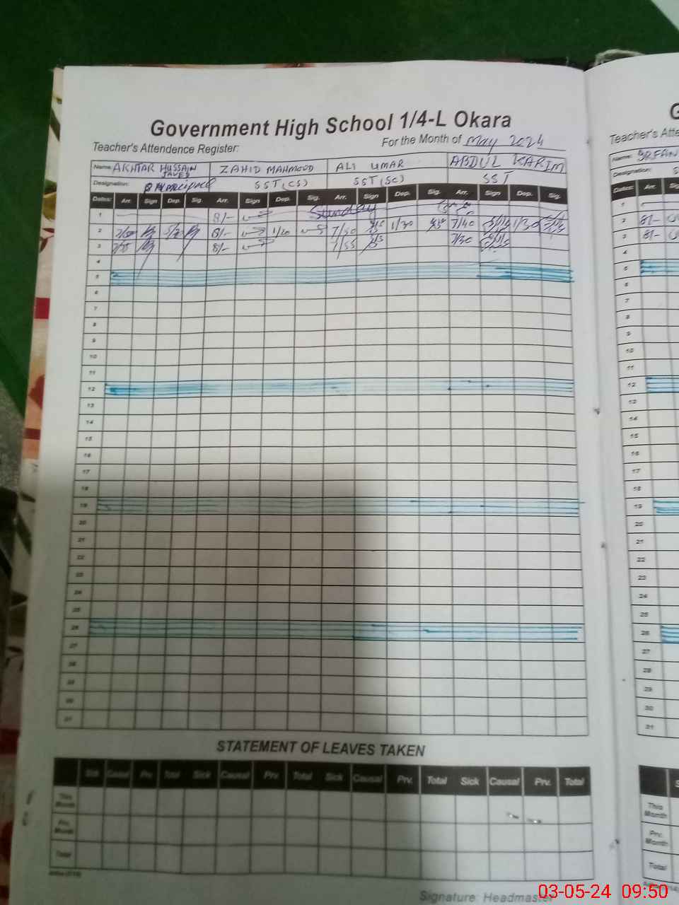 | 35**** | Mu**** Fa**** | 3 | 1 | 0 | 0 | 0 | 0 | 0 | 0 | 0 | 0 | 0 | Exam Duty |