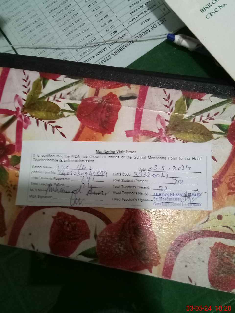 | EMIS Code: 39320027 | Name of School: GHS CHAK NO. 1/4-L | |||