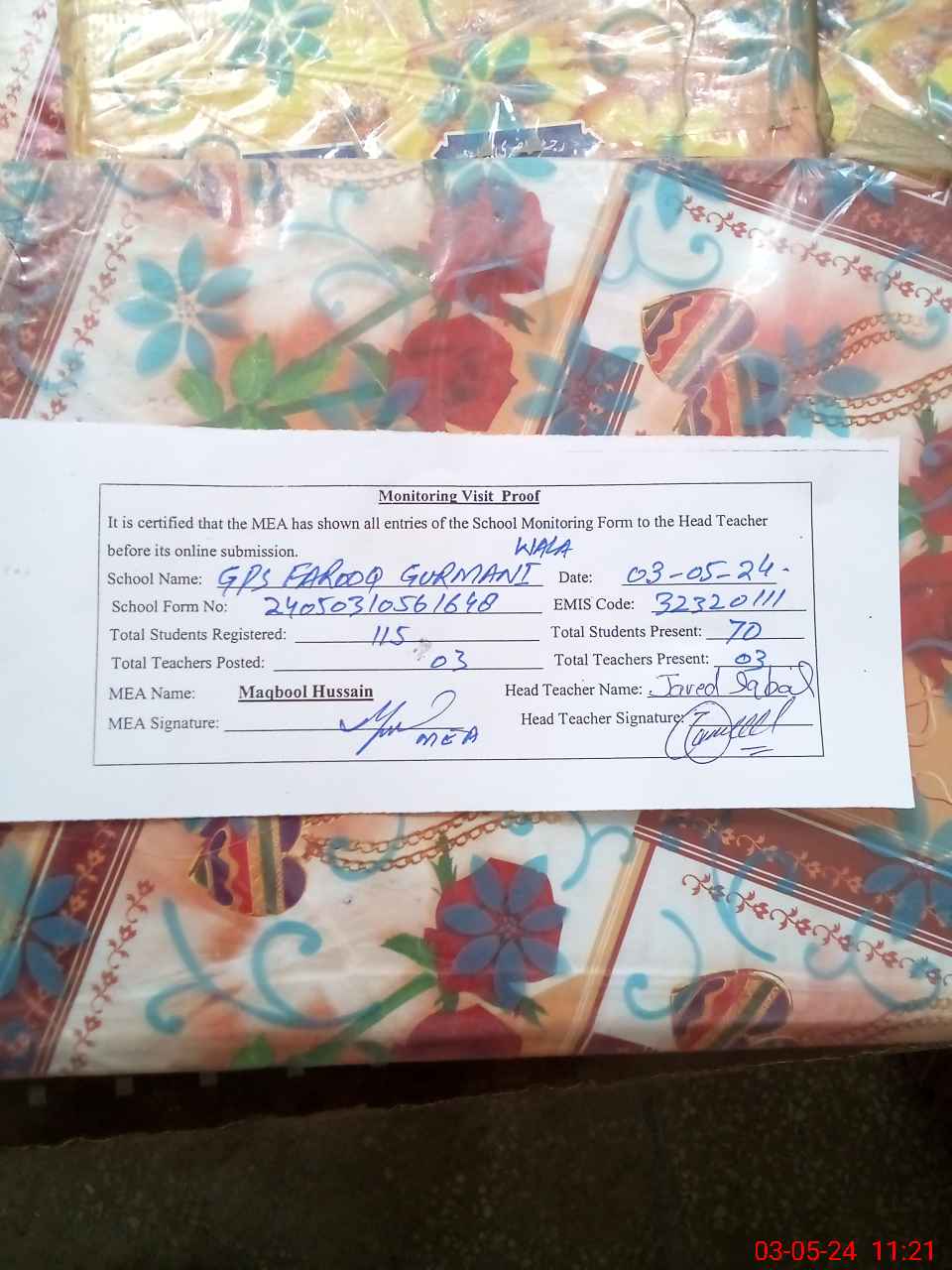| EMIS Code: 32320111 | Name of School: GPS FAROOQ GURMANI | |||