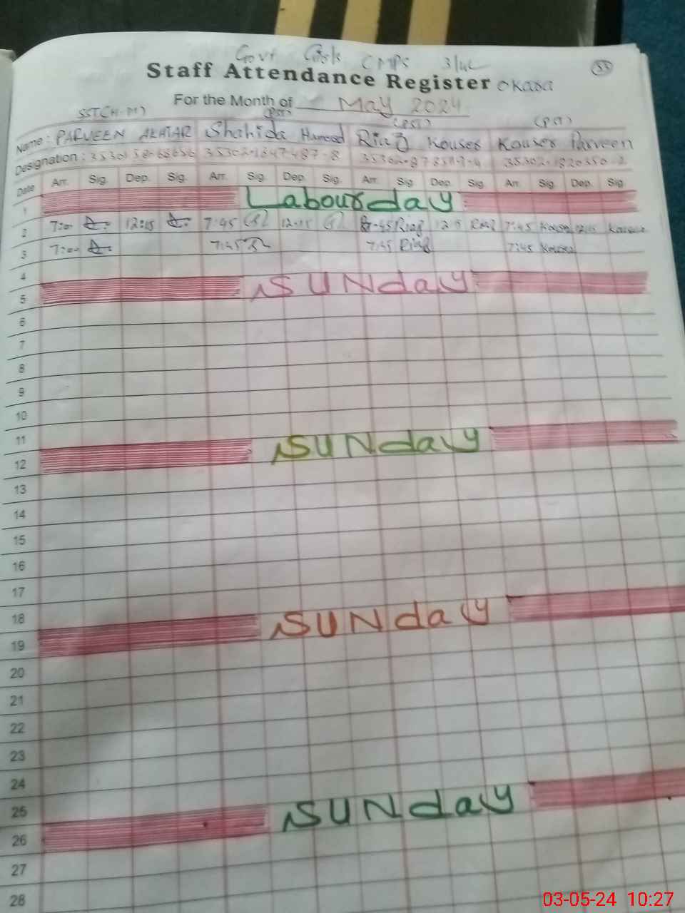 | CNIC | Full Name | Designation | R/C | Absence During Last Calender Month |