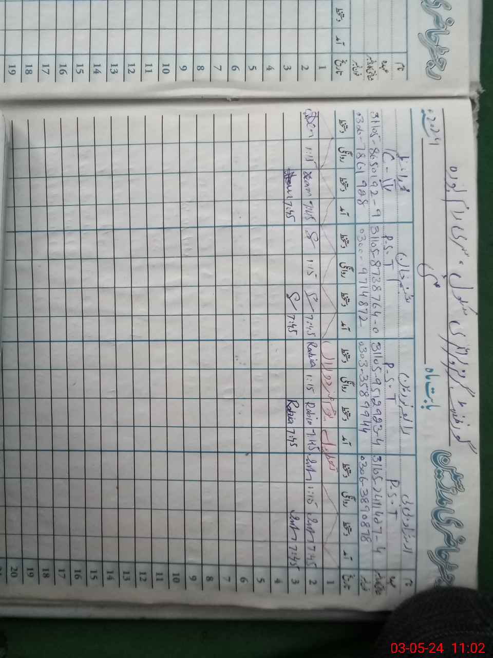 | CNIC | Full Name | Designation | R/C | Absence During Last Calender Month |