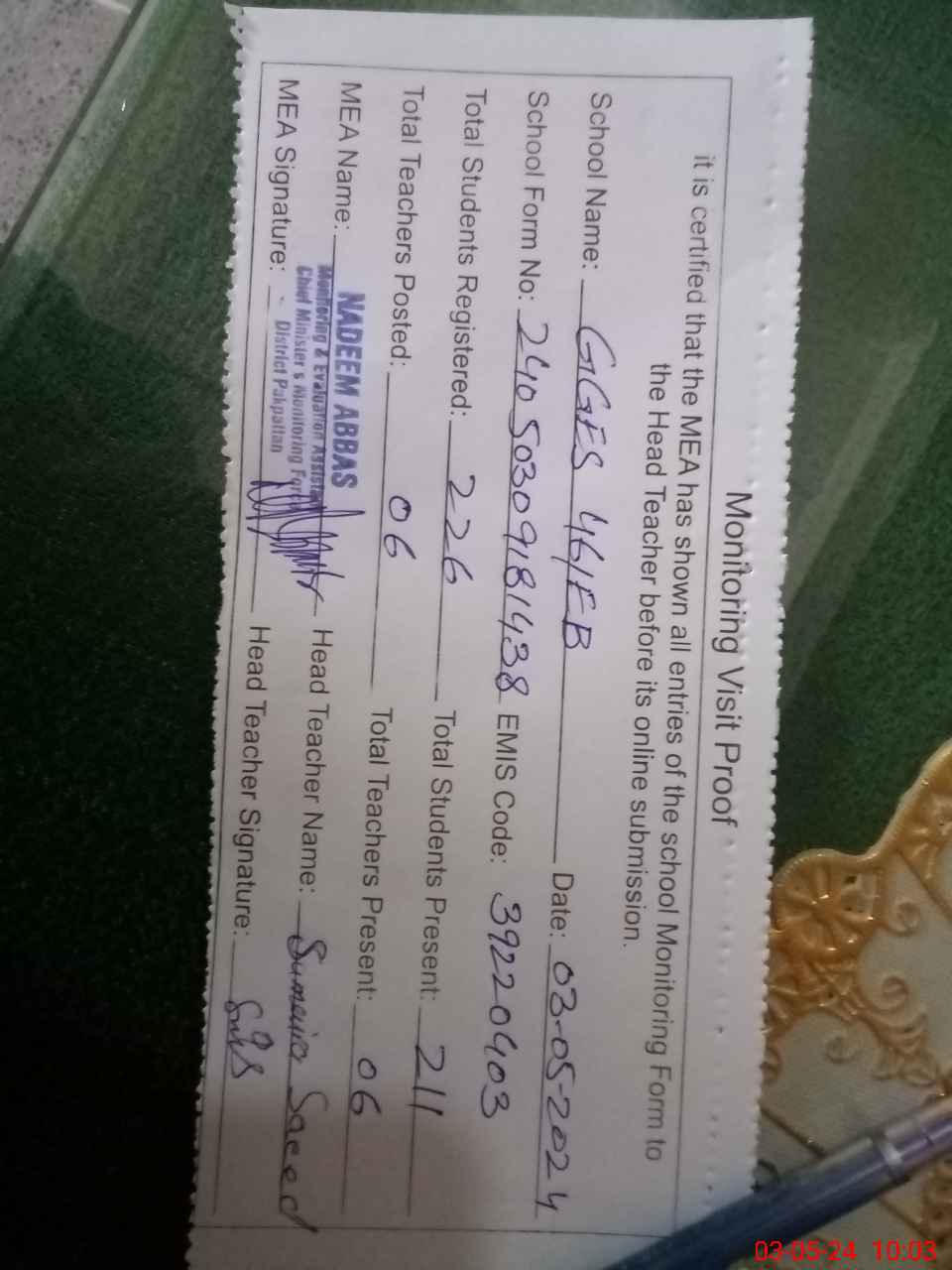 | EMIS Code: 39220403 | Name of School: GGES 46 EB PO 46 EB | |||