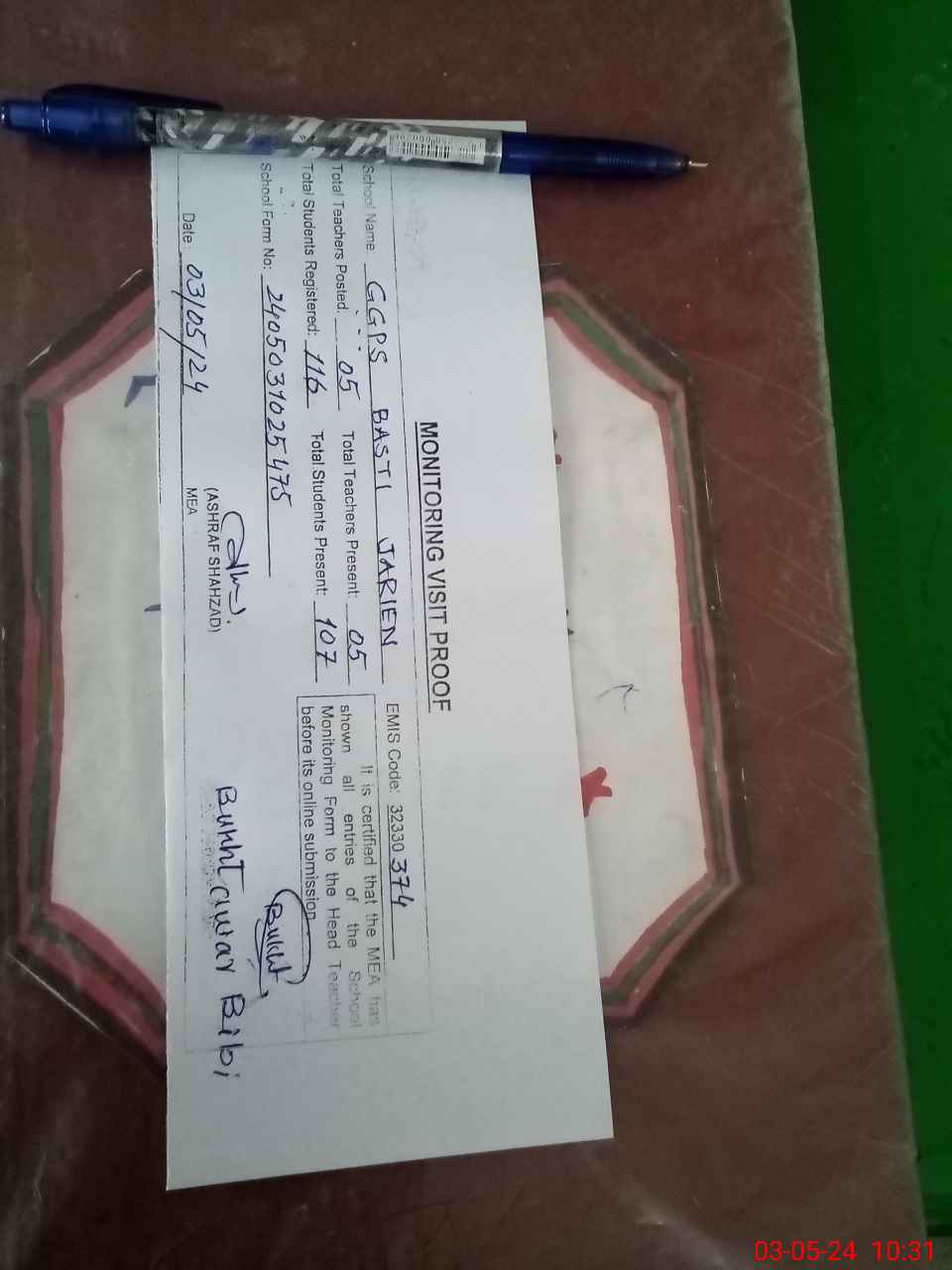 | EMIS Code: 32330374 | Name of School: GGPS BASTI JARAIN | |||