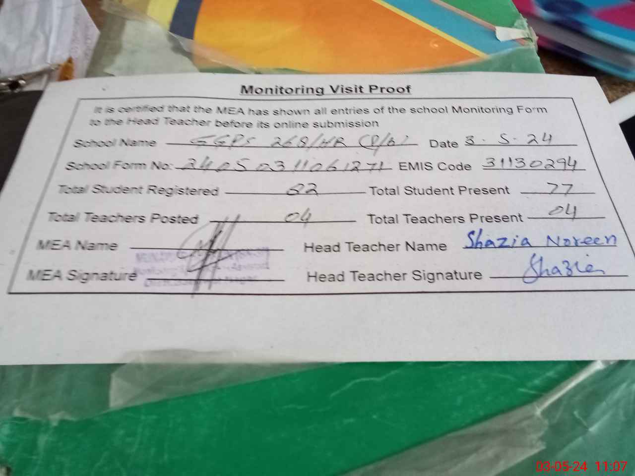 | EMIS Code: 31130294 | Name of School: GGPS CHAK NO 268 HR PUL BASTI | |||