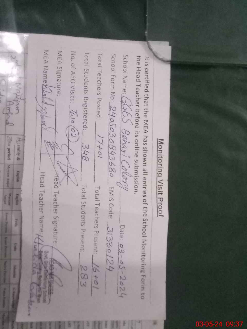| EMIS Code: 31330124 | Name of School: GGES BEHARI COLONY | |||