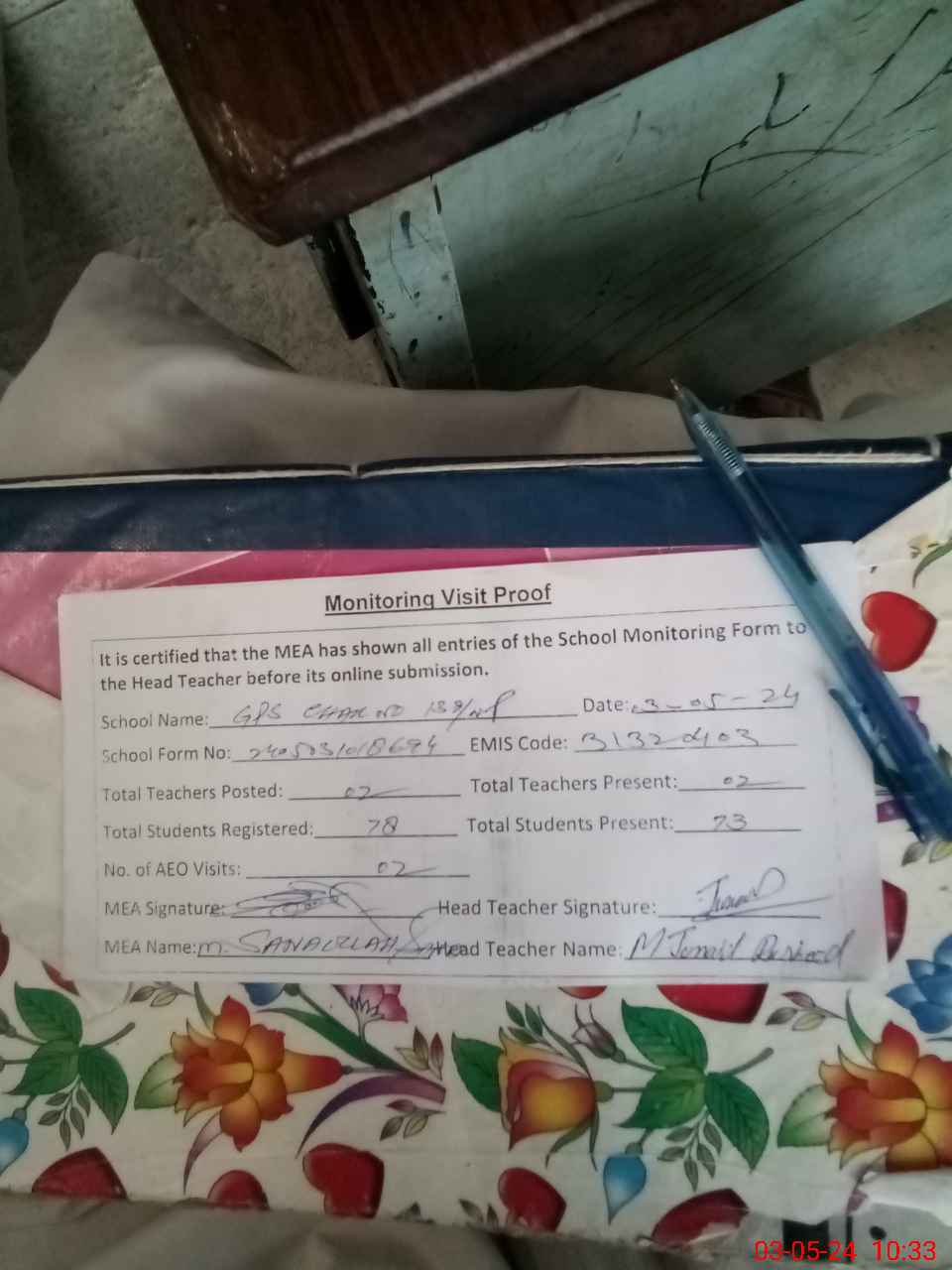 | EMIS Code: 31320403 | Name of School: GPS CHAK 139 NP | |||