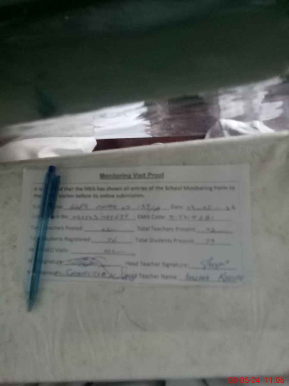 | Attendance Register | Head Teacher | MEA with School | Visit Proof |