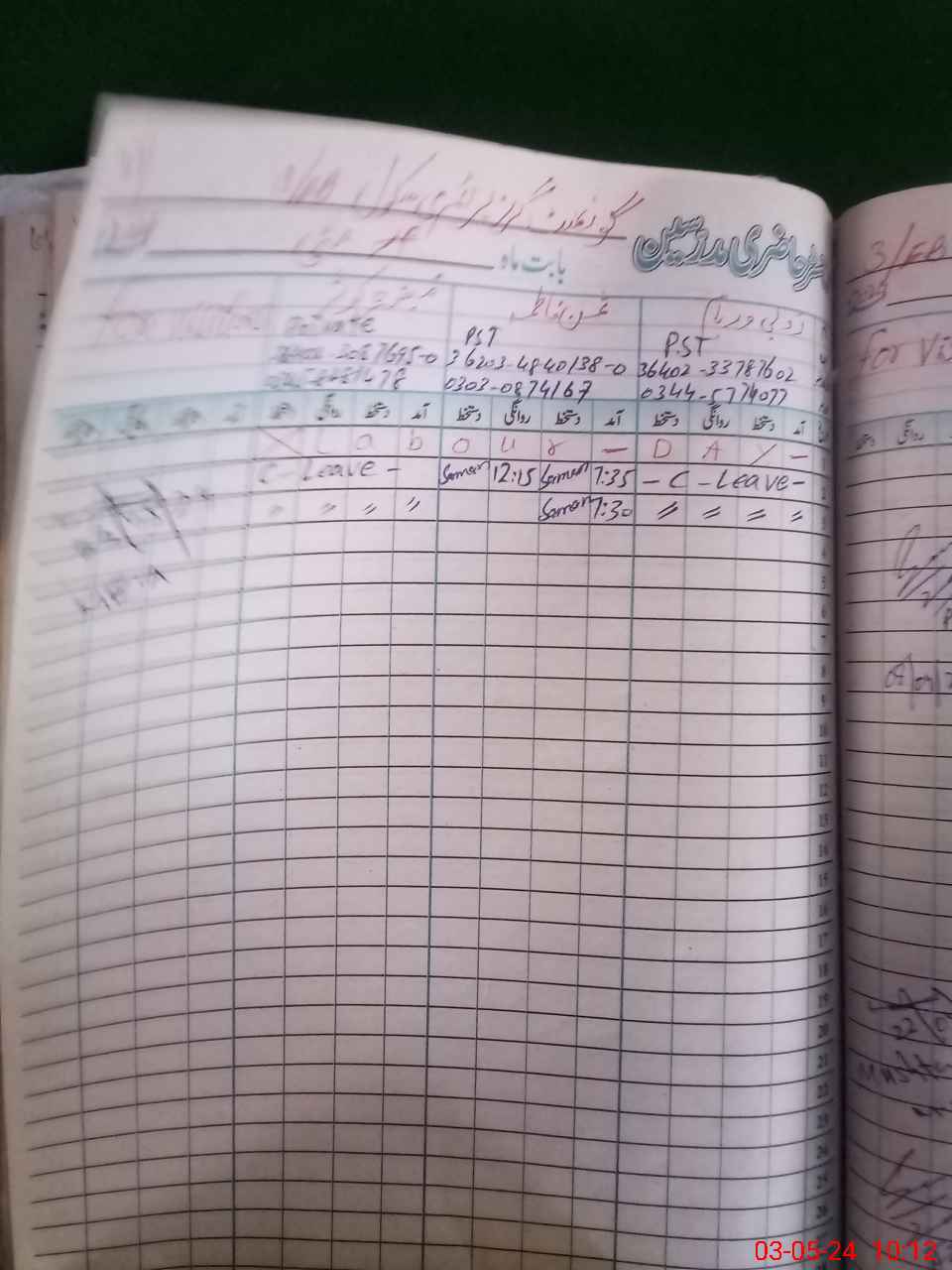 | Leave | Duty | Absent | Maternity | Medical | Ex- Pak |