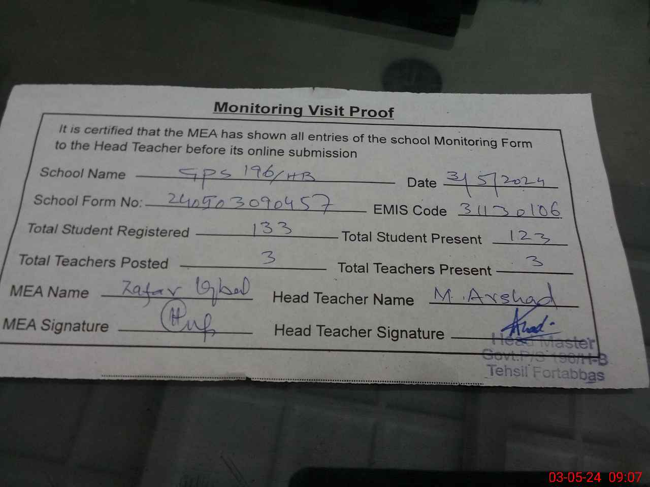| EMIS Code: 31130106 | Name of School: GPS CHAK 196/HB | |||