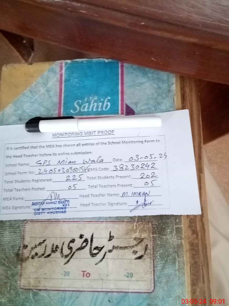 | Attendance Register | Head Teacher | MEA with School | Visit Proof |