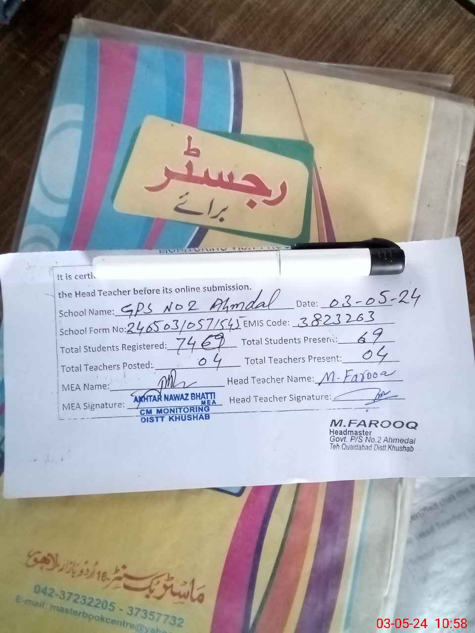 | Name: MU**** FA**** Designation: (School Headmaster's/Headmistress's) PST Phone/Cell Number: 03**** |
