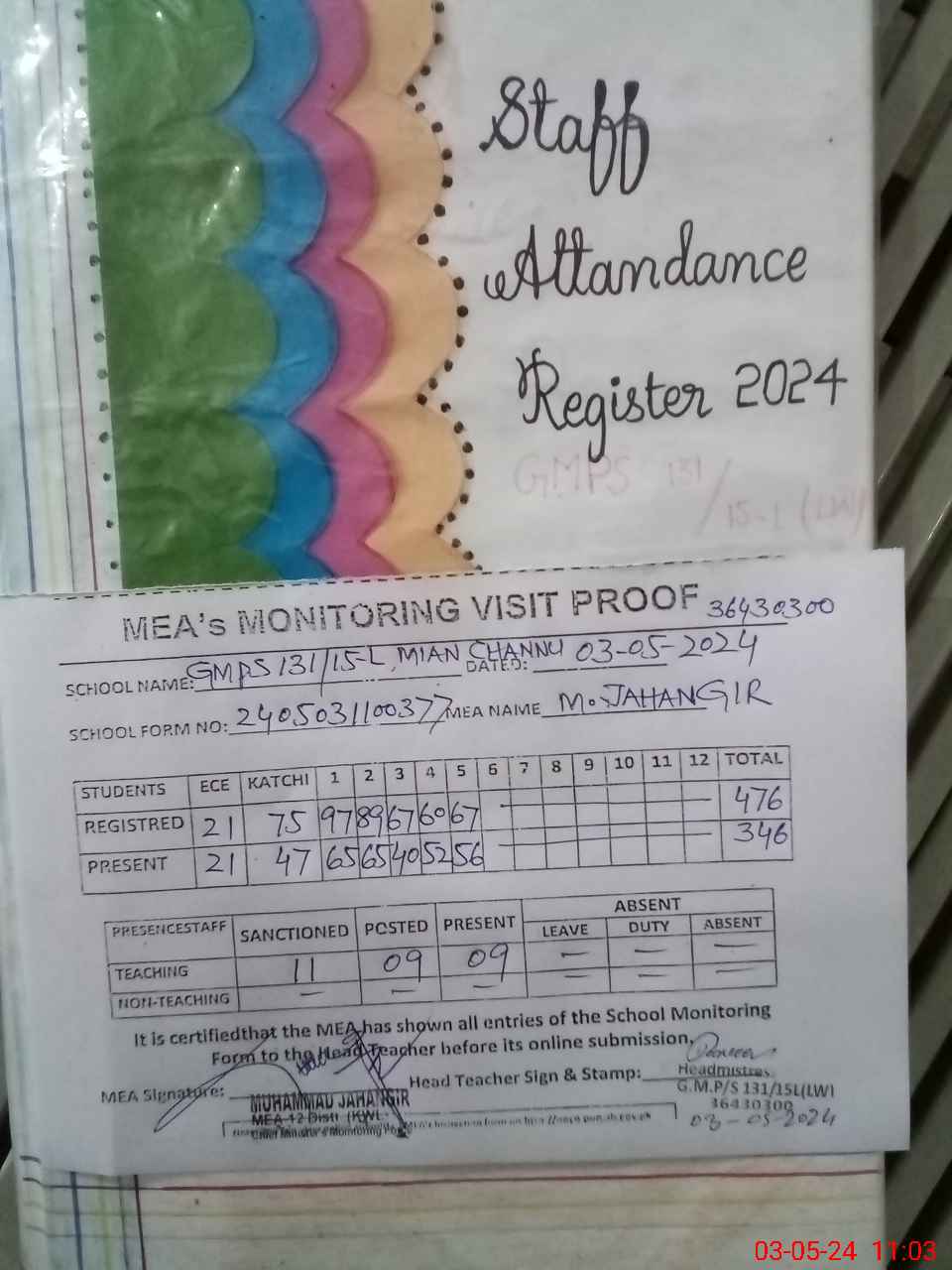 | EMIS Code: 36430300 | Name of School: GMPS 131/15-L, P/O 132/16-L, MIAN CHANNU | |||